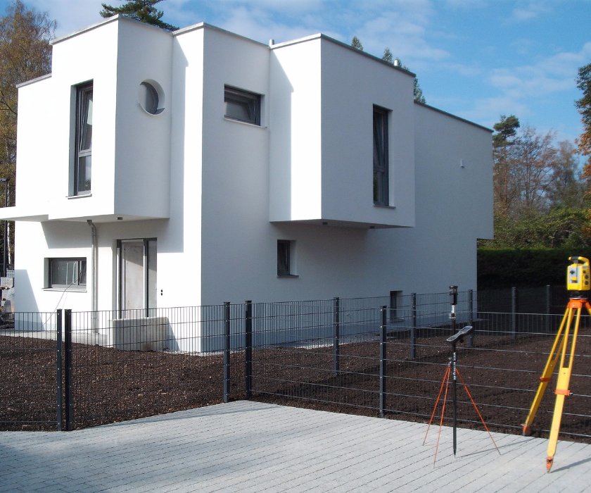 Einmessung neu errichteter Gebäude zur Übernahme ins Liegenschaftskataster.
